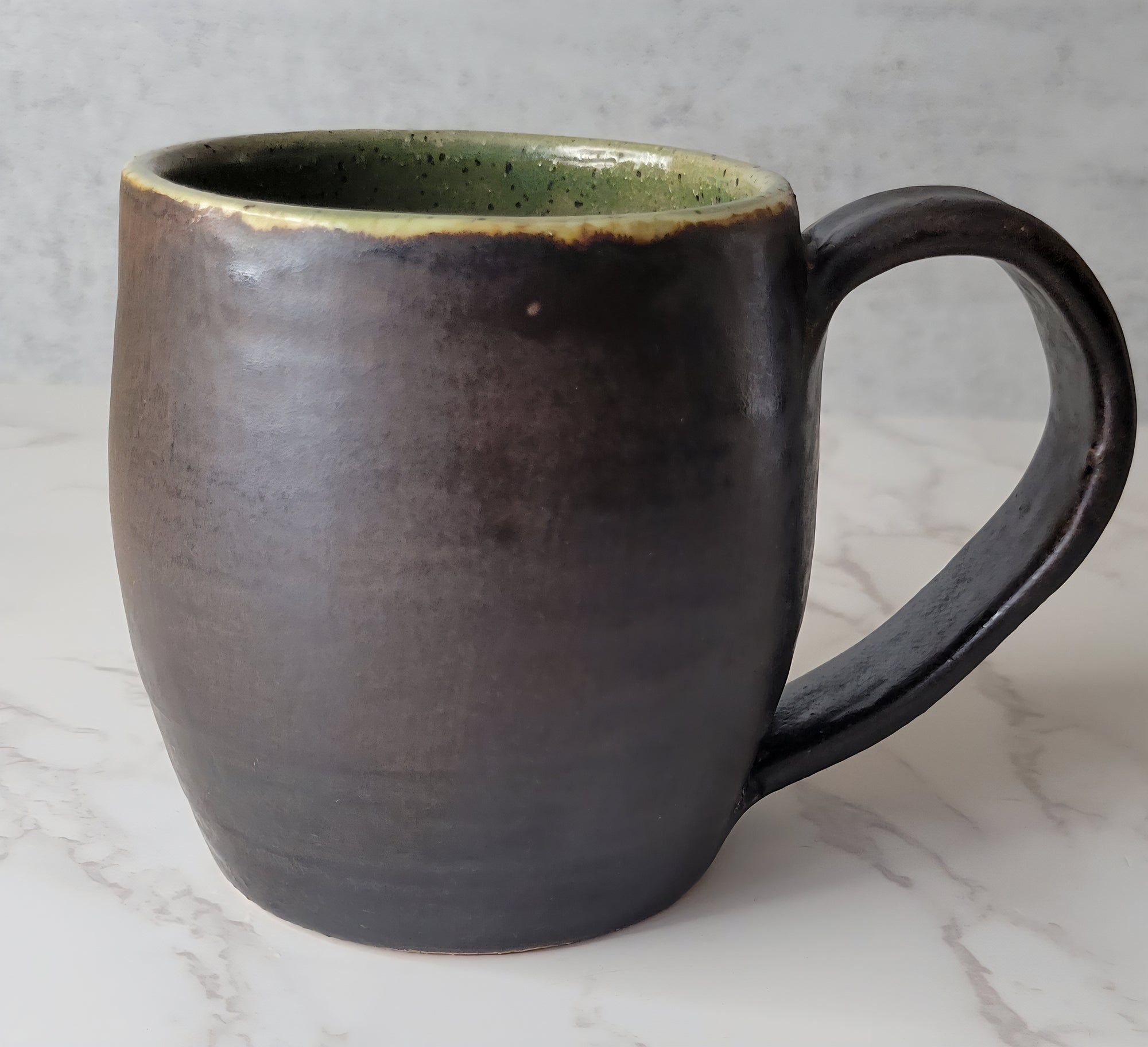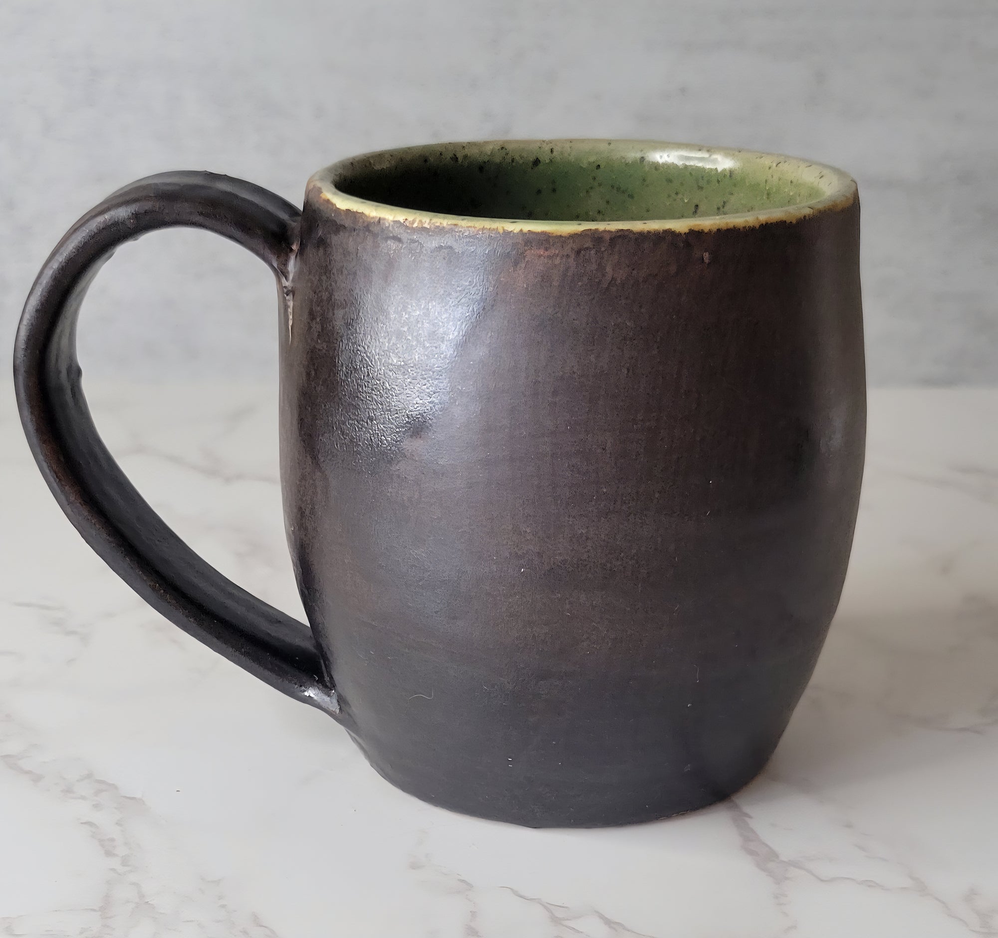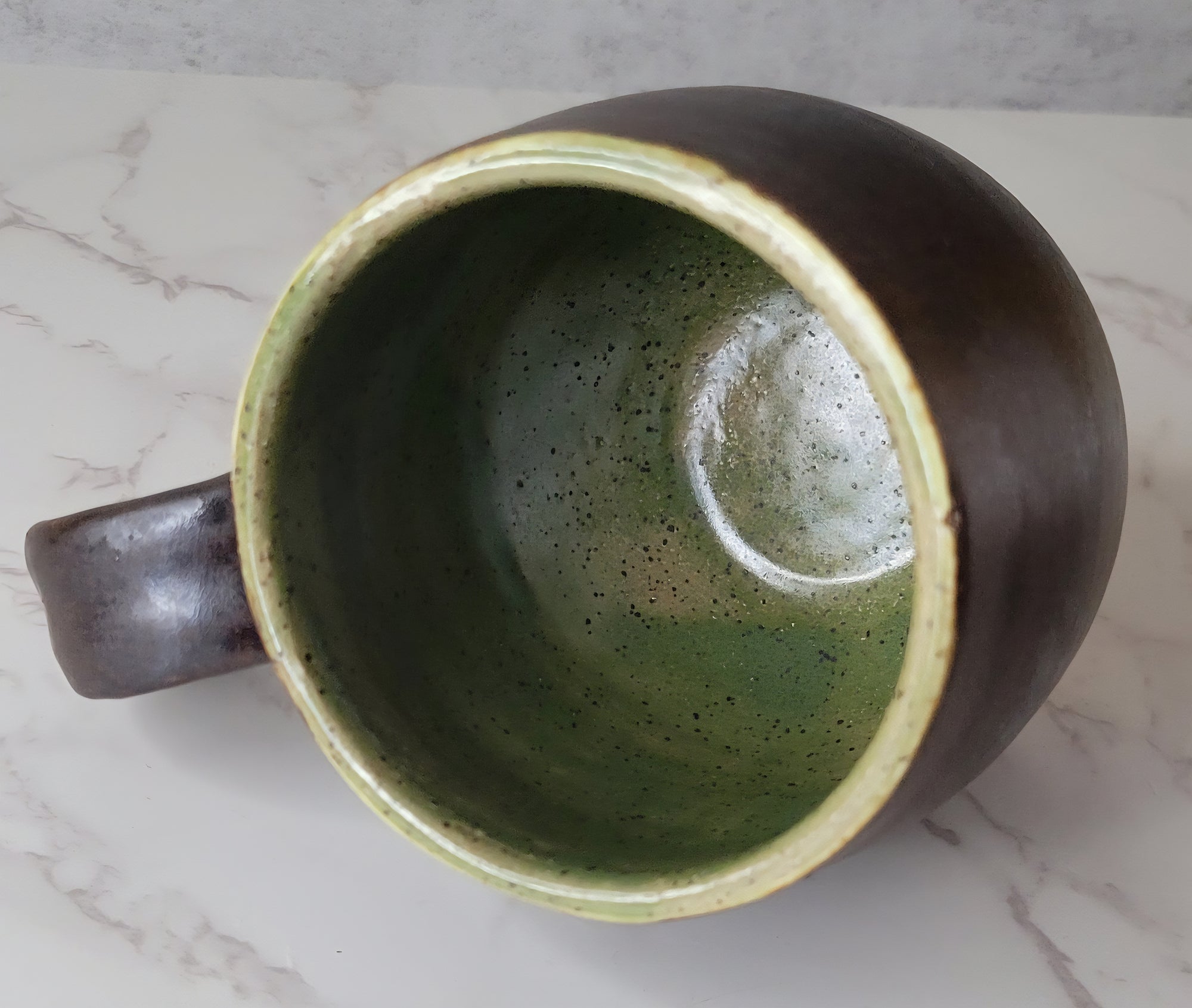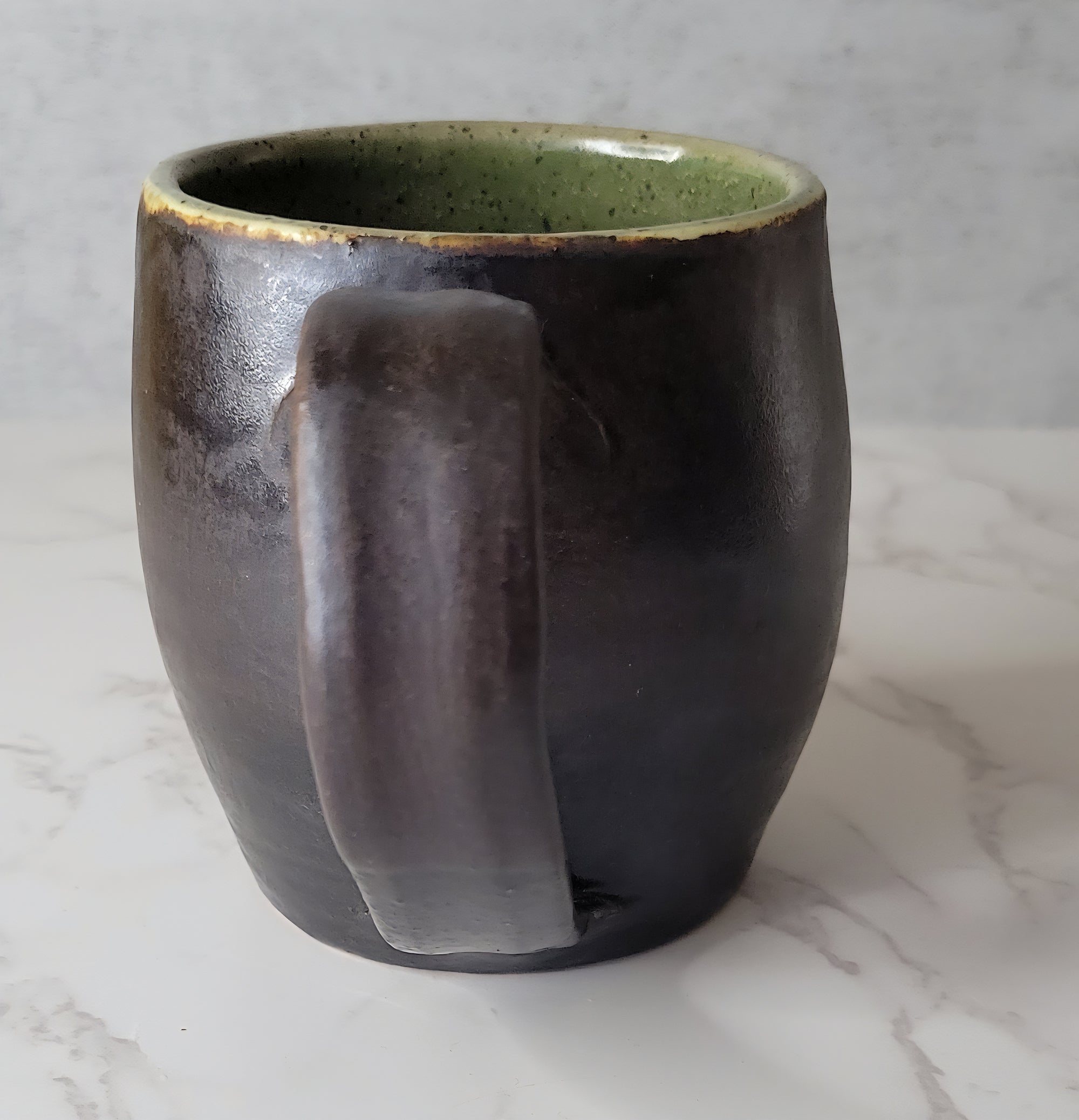 Copper Brown and Green Mug with Handle 14 oz