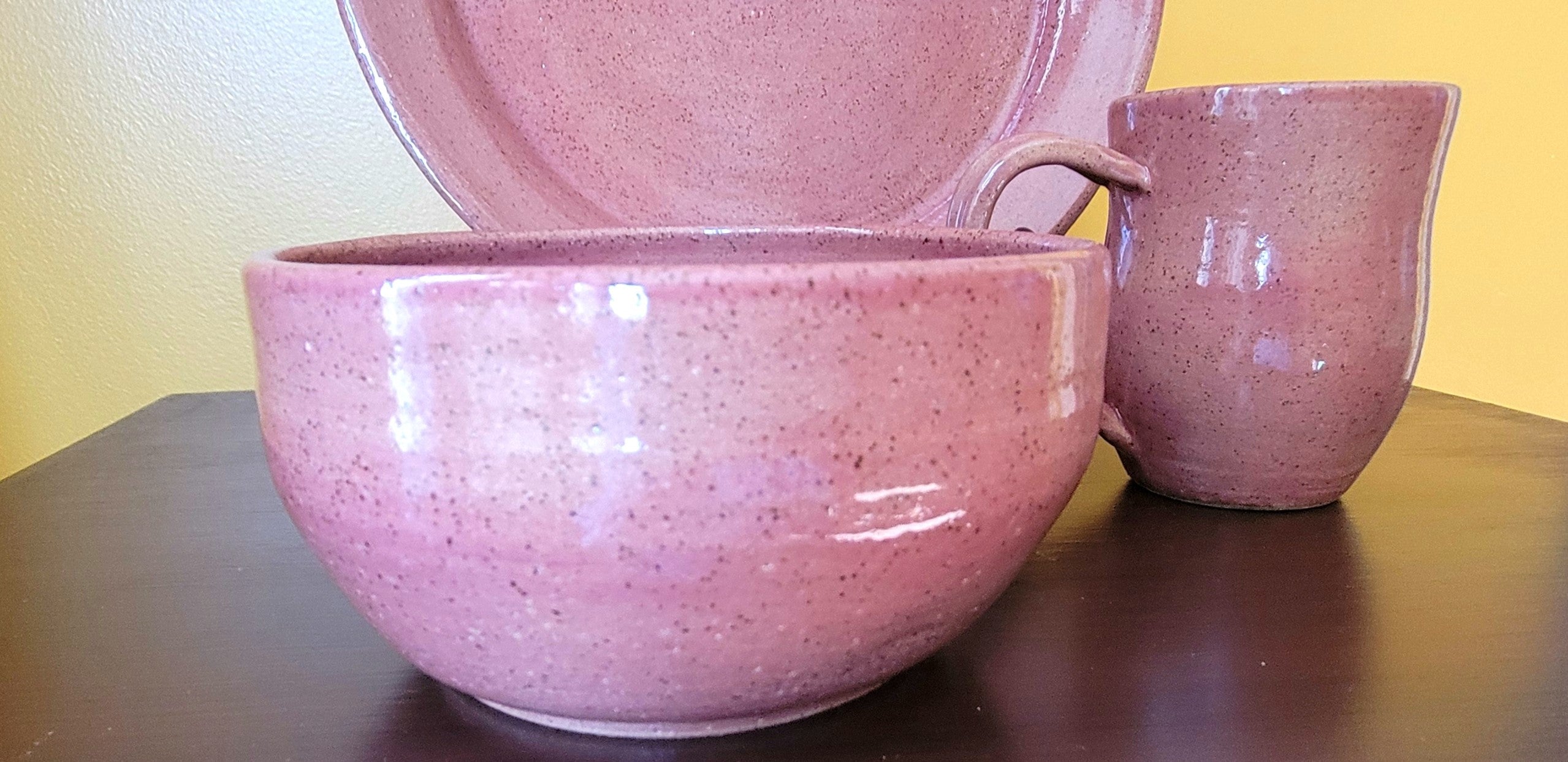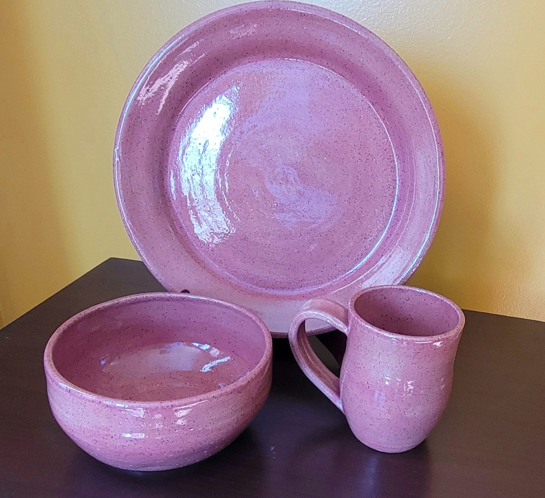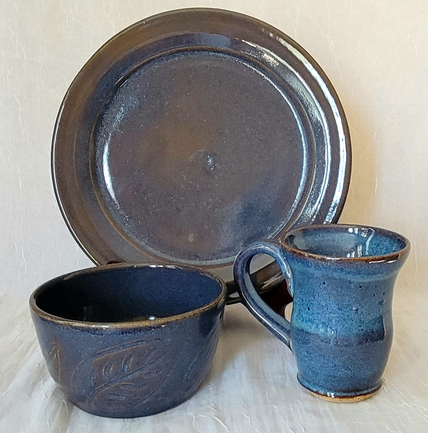 Set of Plate, Mug and Bowl. Plate measures 10 inches across, mug holds approximately 12 oz. Microwave/Dishwasher/food Safe.