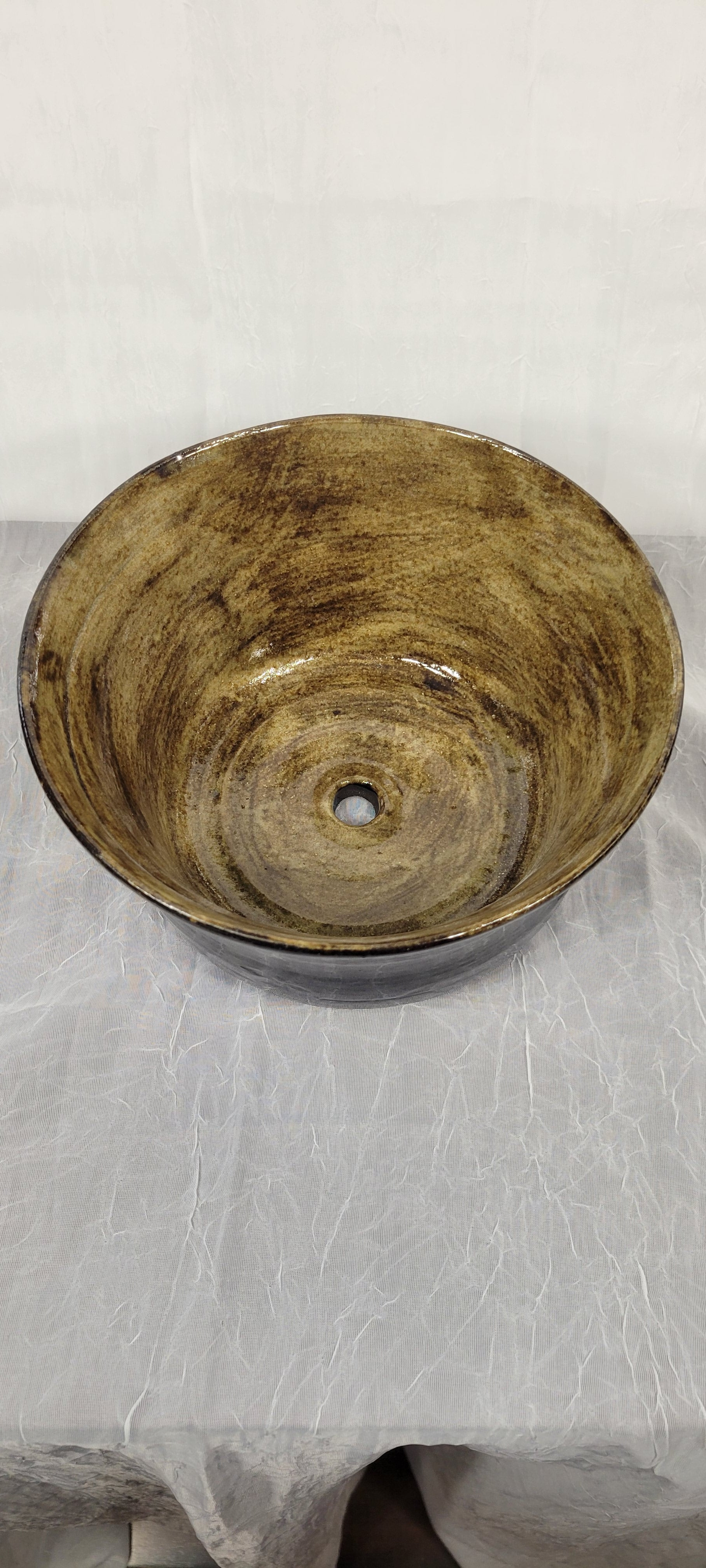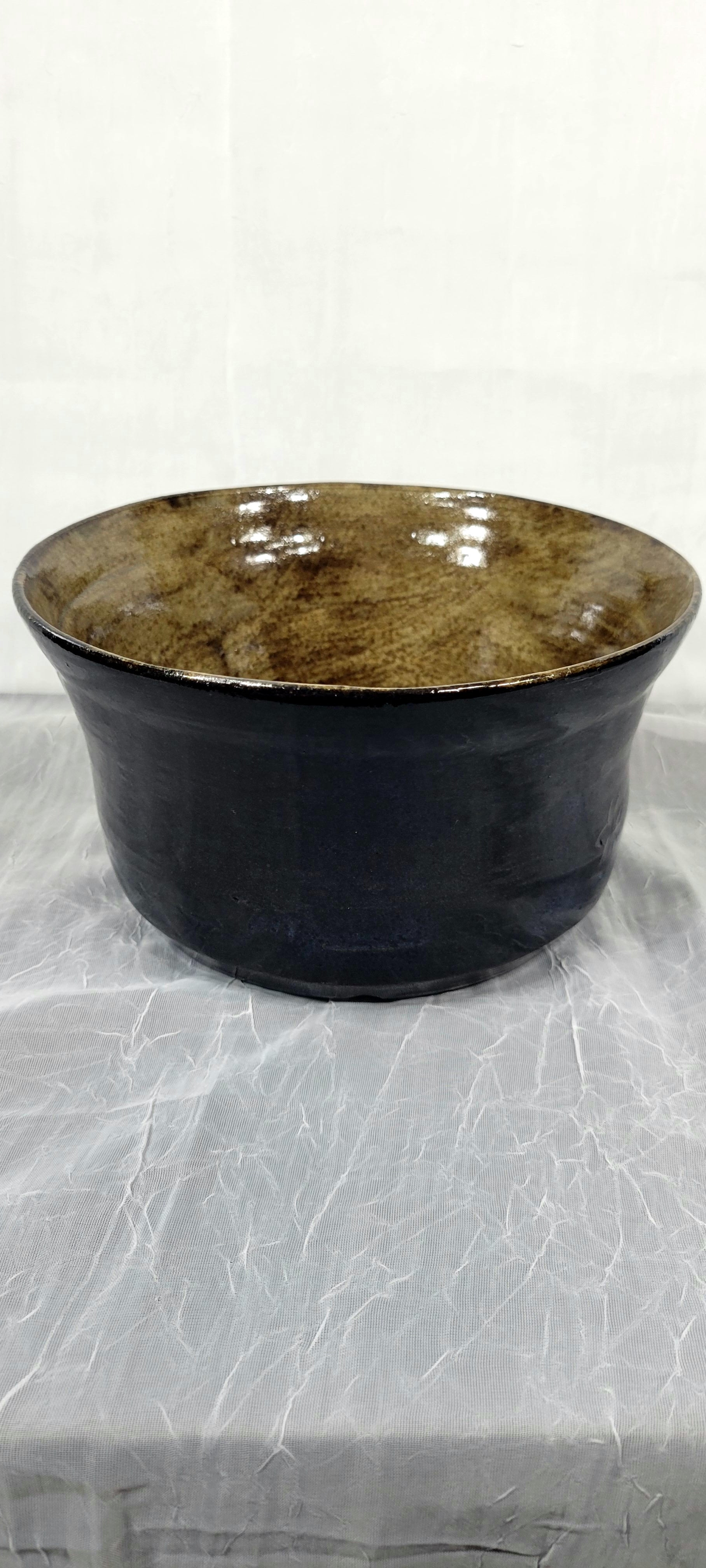 Dark Blue and Brown planter with drainage hole. Planter measures 4 inches tall and 7.5 inches wide.