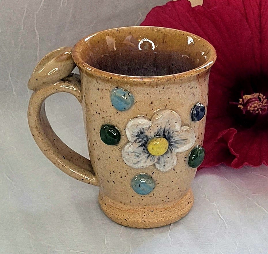 Sculpted Daisy mug. Holds 8 oz. Microwave/Dishwasher/Food Safe.